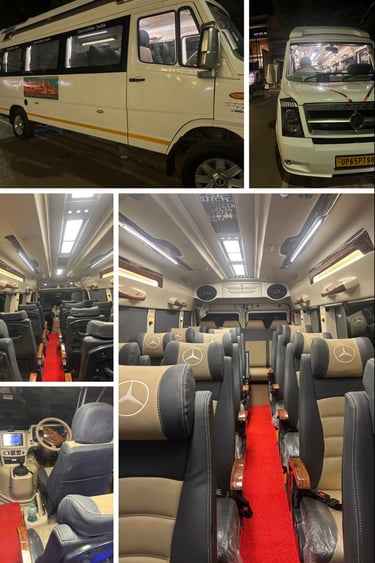 For an even larger group, our 20-seater Tempo Traveller is the perfect choice. This vehicle is often preferred for corporate outings, school excursions, and long-distance journeys where a full-sized bus is not required. Its spacious design ensures that all passengers have a comfortable seat, and the vehicle's robust performance guarantees a smooth journey, even on long routes.