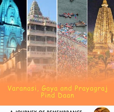 Experience a sacred spiritual journey through three holy cities - Varanasi (Kashi), Gaya, and Prayagraj - to perform the ancient Hindu ritual of Pind Daan for ancestral liberation. Visit sacred temples, perform rituals at holy ghats and Triveni Sangam, witness mesmerizing Ganga Aarti, and seek blessings for departed souls' peace and moksha.
